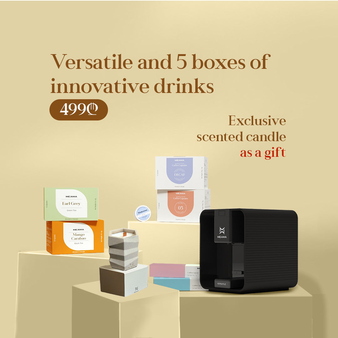 Versatile აპარატი თავსებადია როგორც ესპრესოს, ასევე მულტი კაფსულის ფორმატთან – მოამზადე ყავა, ჩაი და ნაყენები ერთი აპარატით. აღმოაჩინე 24 განსხვავებული გემო კაფსულების ნაკრებში და შეიგრძენი Meama-ს პრემიუმ გემო პირველივე ფინჯანში.