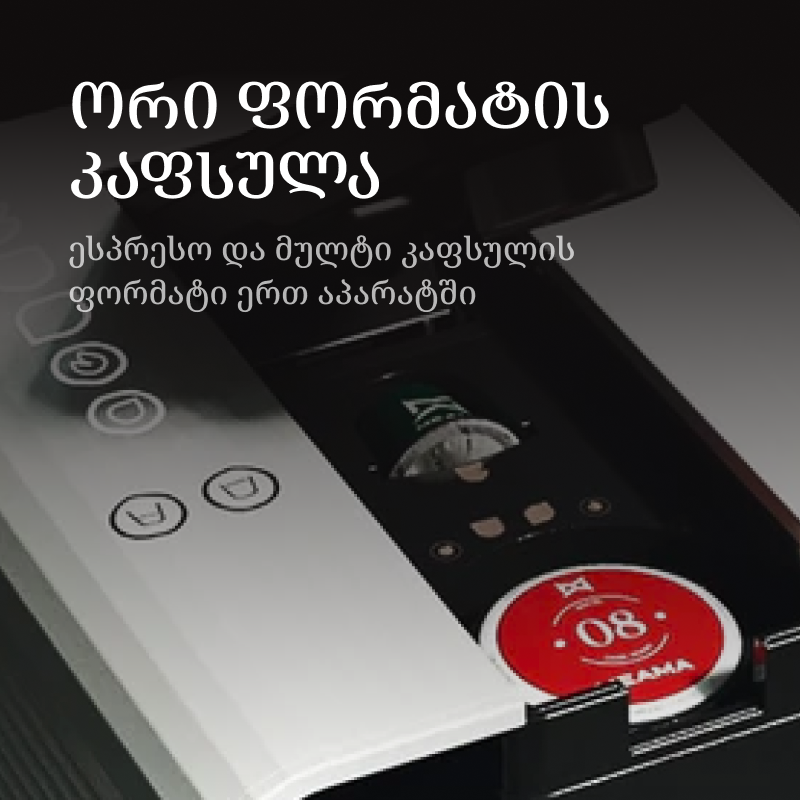 Versatile აპარატი თავსებადია როგორც ესპრესოს, ასევე მულტი კაფსულის ფორმატთან – მოამზადე ყავა, ჩაი და ნაყენები ერთი აპარატით. აღმოაჩინე 24 განსხვავებული გემო კაფსულების ნაკრებში და შეიგრძენი Meama-ს პრემიუმ გემო პირველივე ფინჯანში.